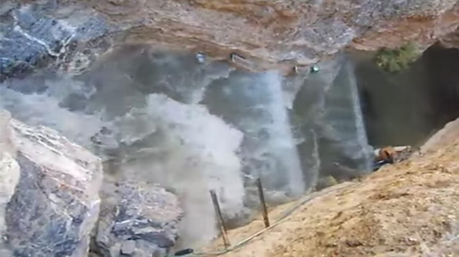 To illustrate the interconnectivity of the Death Valley Regional Groundwater Flow System as well as its connectivity to the rest of the planet, one should consider the rare occurrences of remote seismic events that jolt the otherwise placid waters of Devils Hole. On March 20, 2012, several field biologists conducting research within the cavern witnessed one such event firsthand, catching an “underground tsunami” on video just after 11 a.m. These events occur when distant seismic waves that are normally undetectable by humans are amplified through the massive aquifer as water is forced up into the small chamber of the fissure, releasing intensified energy capable of generating tidal surges of up to four feet high. The captured video shows the pool’s water, pupfish and algae mats as they are sucked down into the chasm repeatedly until several minutes later the water levels returned to normal. The earthquake—a 7.4 magnitude temblor originating in Oaxaca, Mexico, centered twelve miles below the earth’s surface and some 2,000 miles away was the cause of this chaotic incident.[17] This was not the first or last time this type of seismic event would occur here, suggesting that complex interrelated geological machinations deep at work within the earth’s crust are connected to far distant geographical points and are more complicated than we can ever imagine.