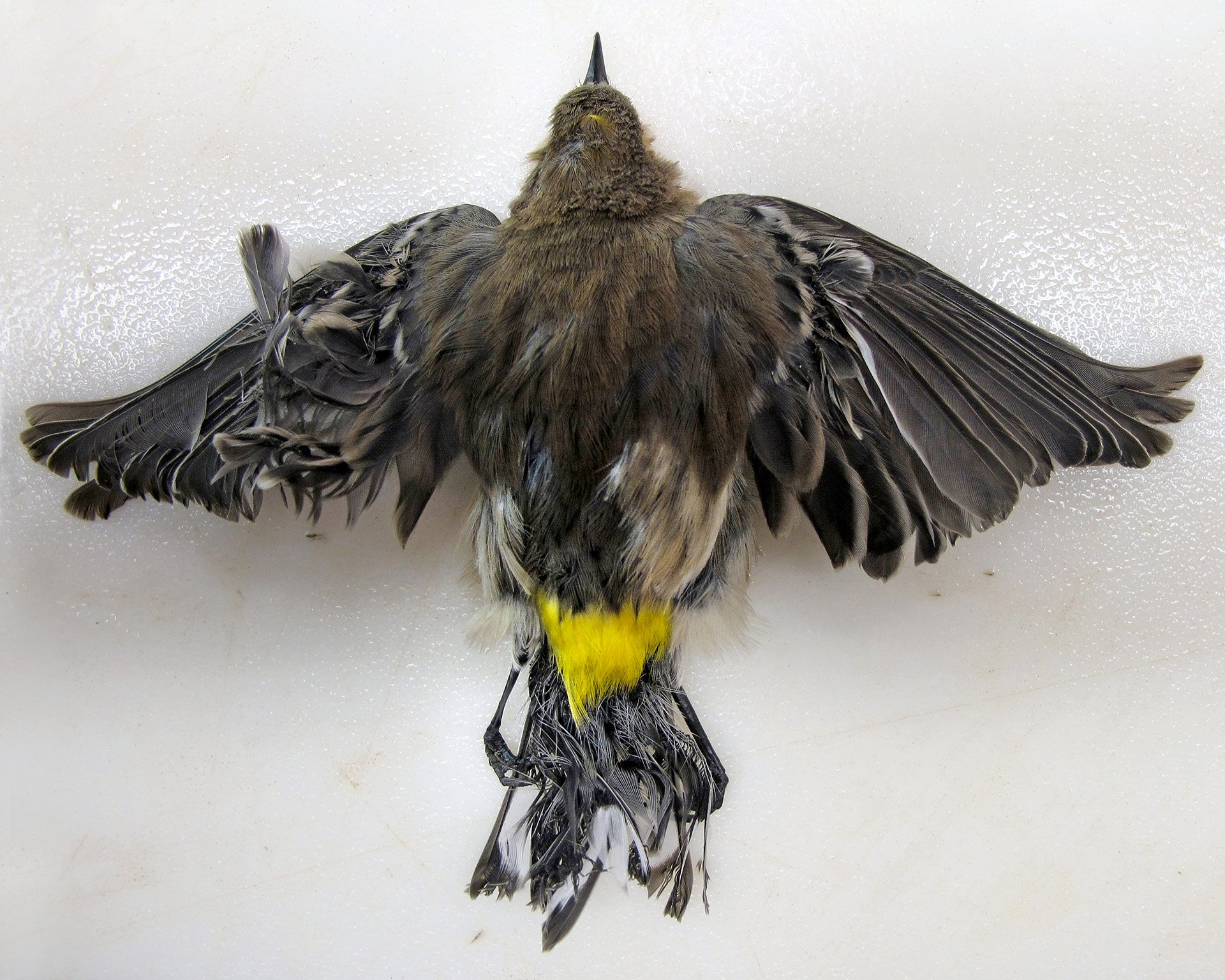 A yellow-rumped warbler (Setophaga coronata) burned mid-air at ISEGS, U.S. Fish and Wildlife Service, 2013.