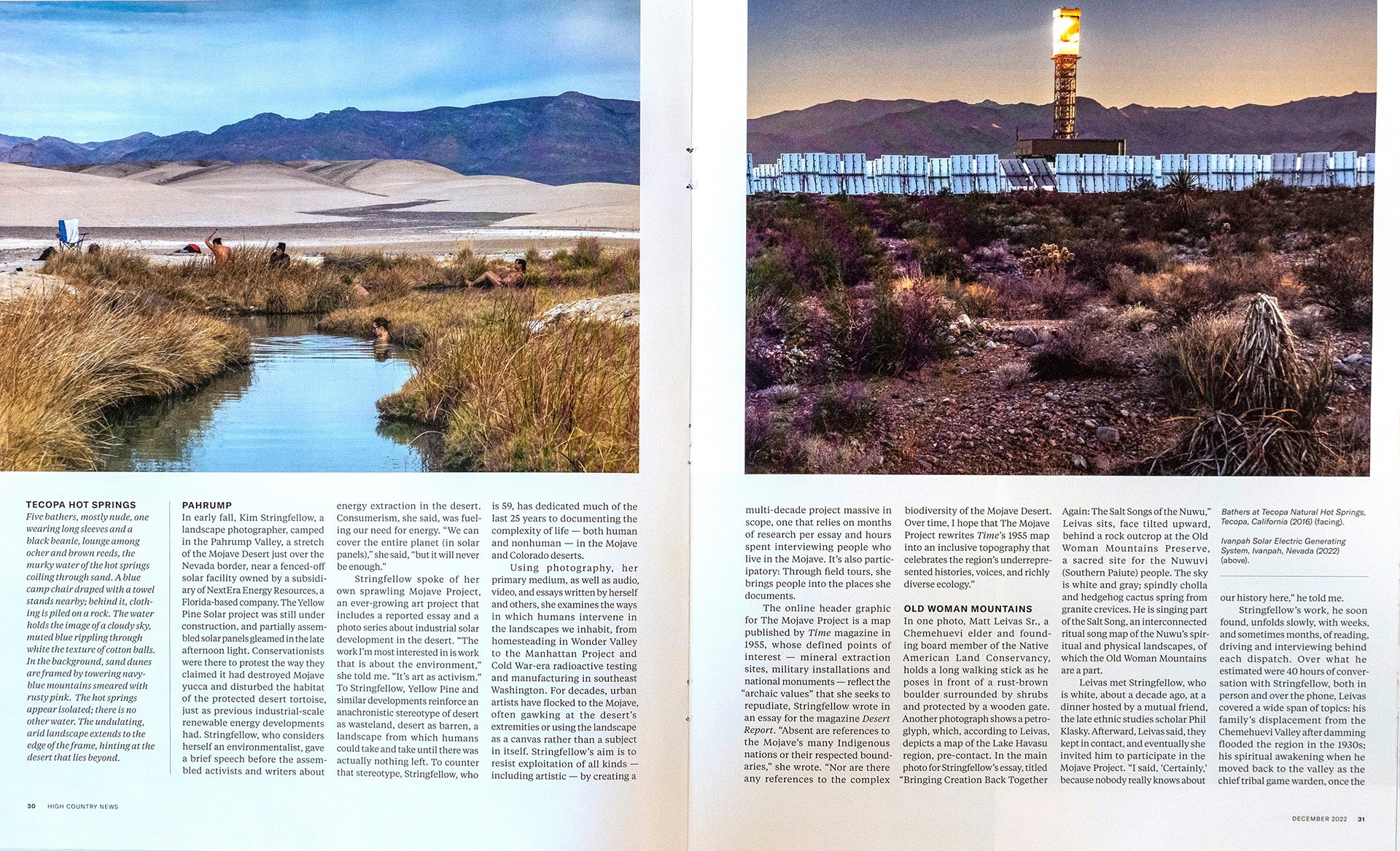 Journalist Meg Bernhard (New York Times Magazine, The Los Angeles Times, The New Yorker) wrote an in-depth feature about The Mojave Project for the High Country News December 2022 issue. Meg understands what is central to MP and did a wonderful job sharing my perspective and the creative/activist drive behind the project. Read the feature here: https://www.hcn.org/issues/54.12/features-arts-culture-an-expedition-through-kim-stringfellows-mojave.
